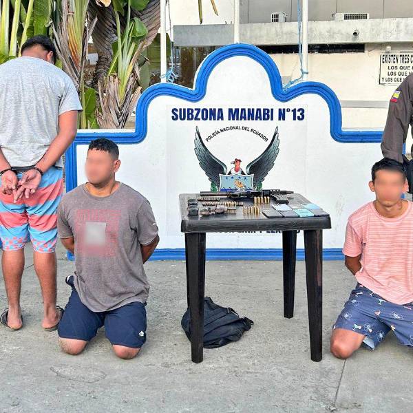 Tres presuntos integrantes del grupo armado organizado Los Choneros fueron detenidos este 30 de agosto en Portoviejo, capital de la provincia de Manabí. Según informó la Policía Nacional, entre los aprehendidos se encuentra un adolescente.