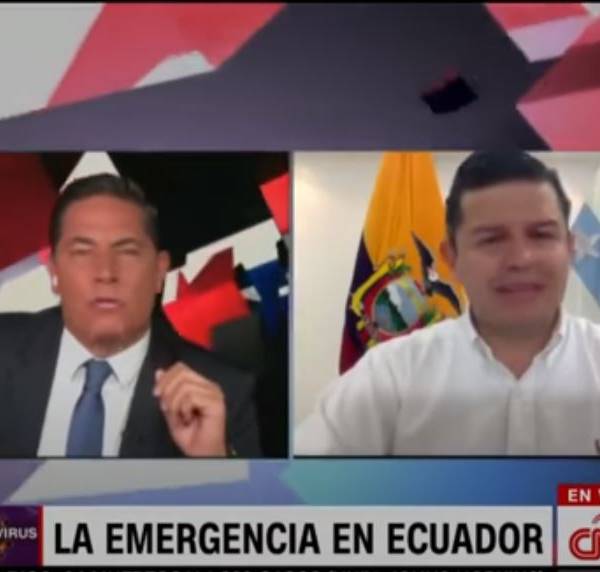 Antes de dar paso a las preguntas en torno la pandemia del coronavirus que golpea a Ecuador, Fernando del Rincón hizo una aclaración y dijo que la entrevista había sido solicitada por el Gobierno ecuatoriano, a lo que Roldán respondió que era cierto, y que había sido solicitada desde el 9 de abril pasado.