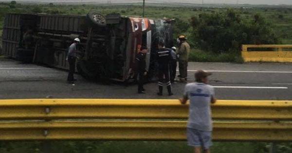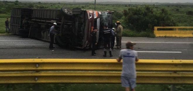Diez personas quedaron heridas esta mañana, entre ellas una mujer embarazada y una adulta mayor, tras el volcamiento de un bus de la Cooperativa Libertad Peninsular (CLP) en la vía Santa Elena-Guayaquil.