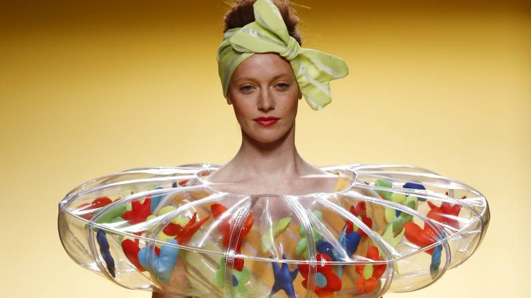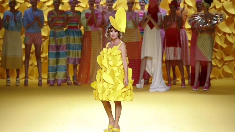 Los icónicos vestidos globo, nube y corazón desaparecieron del 'desfile-espectáculo' de la diseñadora madrileña, para dejar paso a prendas de estilo "casual-chic".