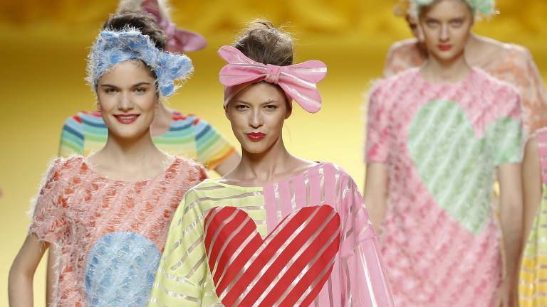 La diseñadora de corazones, Agatha Ruiz de la Prada, sujeta las riendas de su universo de color y silueta imposible y lo sustituye por prendas cómodas con alma comercial y cuidada costura, en la primera jornada de la 62 FashionWeek Madrid.