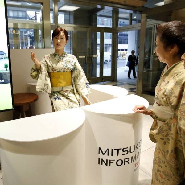 Un robot debutó como recepcionista en una de las tiendas más exclusivas de Tokio. Aiko Chihira sonríe, orienta e incluso canta a los visitantes cuando les da la bienvenida a una de las cadenas de almacenes más antiguas de Japón.