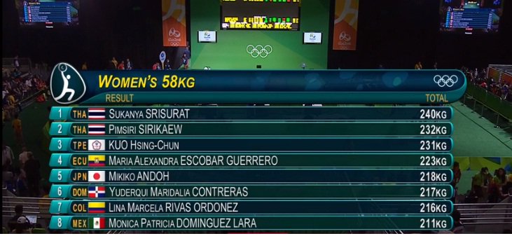 Esta es la segunda vez que Tailandia gana dos medallas en una misma prueba olímpica. Hace cuatro años en Londres Sirikaew y su compatriota Rattikan Gulnoi fueron plata bronce en este mismo peso de halterofilia.
