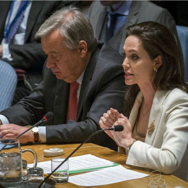 Jolie, enviada especial del Alto Comisionado de las Naciones Unidas para los Refugiados (ACNUR), se sentó en la mesa del Consejo de Seguridad de la ONU para, entre otras cosas, invitar a sus representantes a visitar los campos de refugiados sirios.