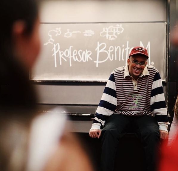 El artista compartió una serie de fotografías del evento, con el siguiente texto: “Profesor Benito M. Me comentan abajo los que quieran matricularse en mi clase”.
