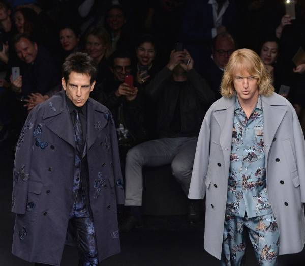Una inmensa ovación se elevó en la carpa instalada en el jardín de las Tullerías, cuando Derek Zoolander (Ben Stiller) y Hansel McDonald, (Owen Wilson), los personajes encarnados por los actores en la película "Zoolander" (2001), aparecieron en la pasarela.