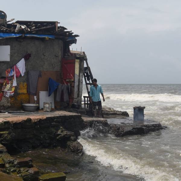 Durante el monzón es frecuente que las olas lleguen hasta la choza de Ganga Singh, junto al mar de Arabia, en la megalópolis india de Bombay, cada día más amenazada por la subida del nivel del agua de los océanos.