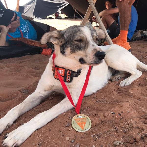 Esta carrera está compuesta por seis etapas y la temperatura alcanza durante el día los 40 ºC, mientras que la noche es fría. Aunque el can recibió la suficiente cantidad de agua y comida por parte de los corredores y organizadores, tuvo un pequeño desfallecimiento en la etapa más larga, de 71 kilómetros, pero consiguió levantarse luego de un descanso y continuar. Durante las noches dormía en el campamento con el resto de participantes.