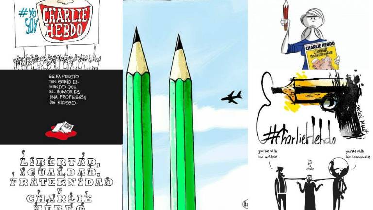 Redacción Internacional.- Caricaturistas de todo el mundo han querido rendir un emotivo homenaje a sus compañeros de Charlie Hebdo, tras el atentado en la sede de la publicación en París que se saldó con doce muertos y que ha sido considerado uno de los mayores ataques de la historia a la libertad de expresión.