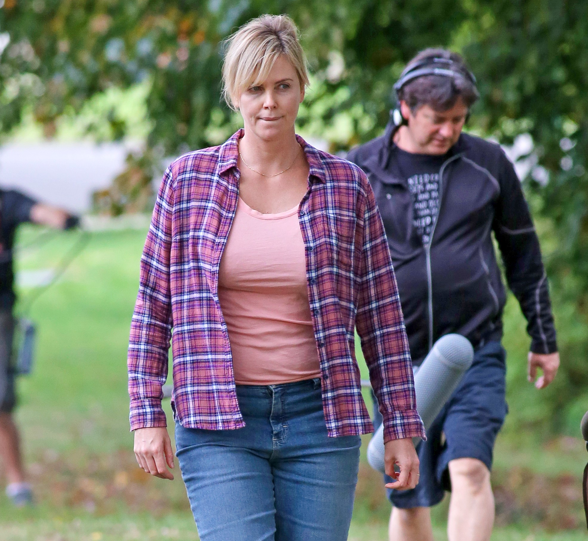 La actriz de 41 años fue vista en el set de su nueva película, Tully, en Vancouver (Canadá), este martes 27 de septiembre, luciendo una figura mucho más gruesa de lo normal.