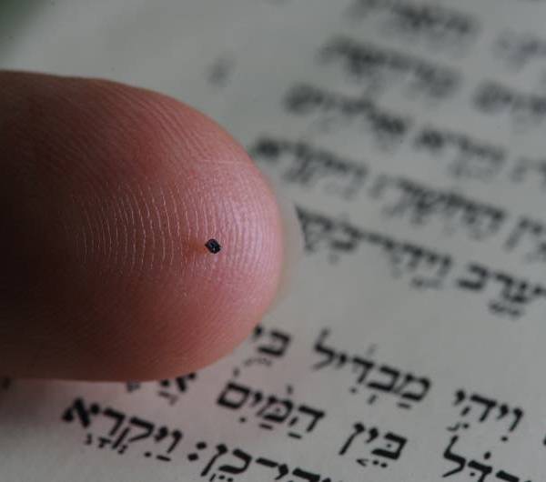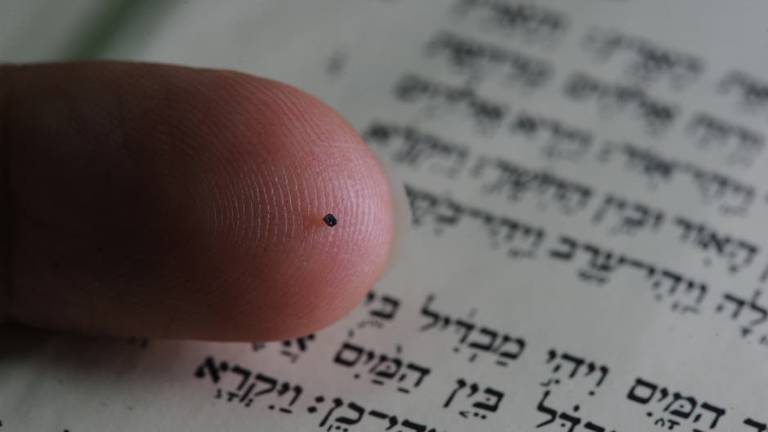 Antigua Testamento en un disco no más grande que la punta de un bolígrafo. La llaman la