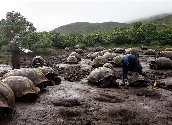 Guardaparques y científicos de la Dirección del Parque Nacional Galápagos marcaron a 4.723 especímenes de una tortuga gigante que habita en la isla volcánica de Isabela, a fin de poder seguir su desarrollo.