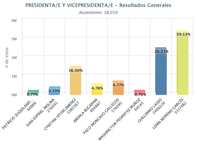 Según el corte realizado hasta las 13h00, los nuevos datos presidenciales eran los siguientes: