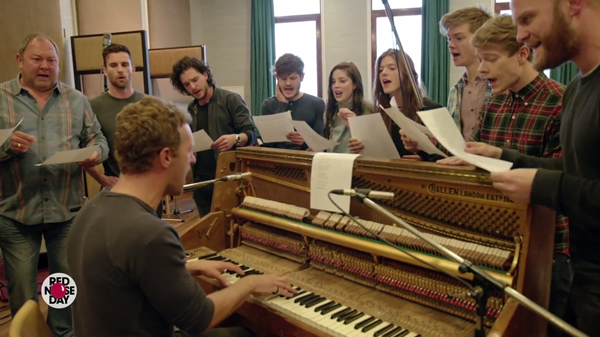 Chris Martin se puso en contacto con algunos actores del elenco del programa de HBO y pusieron en marcha esta propuesta, por la iniciativa de recaudación de fondos Red Nose Day.
