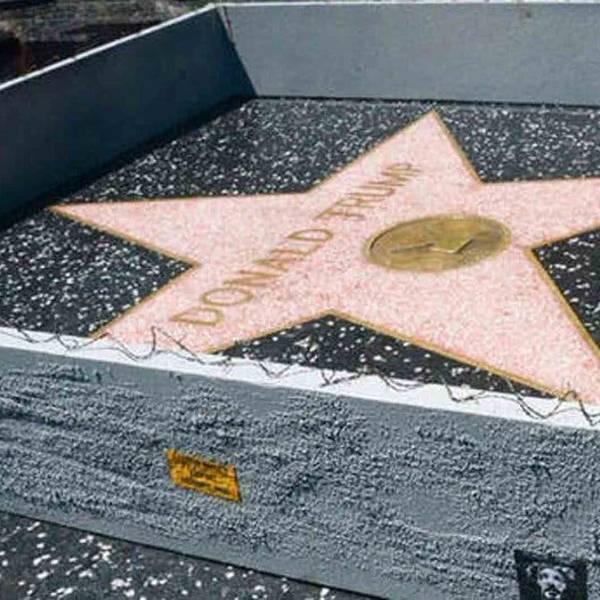 "Alguien había construido un muro gris de hormigón de seis pulgadas de alto alrededor de la estrella con señales de 'No pasar' y coronado con alambre. Este añadido no oficial a la icónica estrella apareció en la tarde del martes para el disfrute de los espectadores", indica el artista.