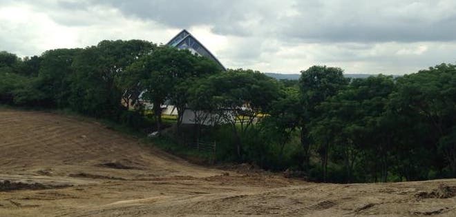 casi 50 hectáreas. Luego aterrizó en el cuartel del Grupo de Intervención y Rescate (GIR) de la Policía y en auto se movilizó hasta el Santuario, ahí lo esperaban varios ministros y otros funcionarios estatales. Una maquinaria del Ministerio de Obras Públicas es utilizada para nivelar el terreno.