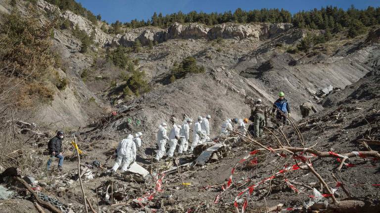 La empresa especializada Belfor France es la encargada de retirar los cascotes del avión siniestrado, dijo un portavoz de Lufthansa.
