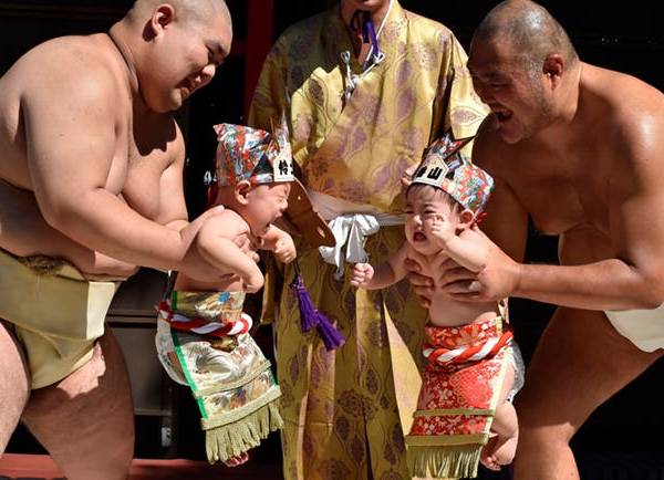 El Nakizumo es un festival de llanto de bebés que tiene lugar en Japón. Los ponen uno frente al otro y el que llora primero se cree crecerá mejor y gozará de buena salud.