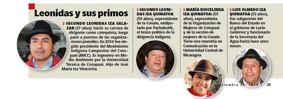 Leonidas Iza Salazar proviene de una familia de dirigentes indígenas históricos. Sus primos participaron en los primeros levantamientos en la Sierra centro, tras la caída del régimen de hacienda.