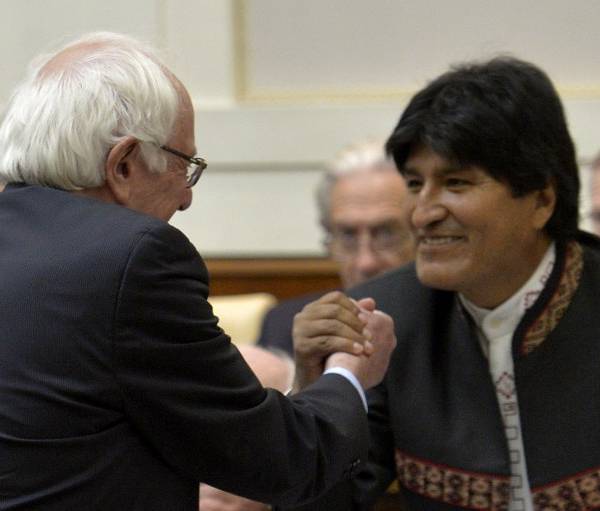 Instalado al lado de Morales, quien le estrechó la mano formalmente al término de su exposición, Sanders condenó también a los ricos "que ocultan su dinero en paraísos fiscales", en una alusión a los documentos de Panamá.