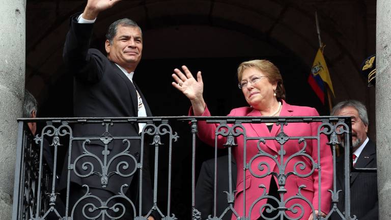 Bachelet llegó a Carondelet, sitiado en el centro histórico de Quito, a las 10.30 hora local (15.30 GMT) y junto con Correa saludó brevemente desde los balcones de la casa de Gobierno a simpatizantes que los vitoreaban desde la Plaza de la Independencia.