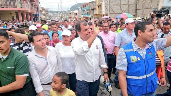 Correa recorrió las casas afectadas por el terremoto del 16 de abril. Y ya en la tarde, 18H00 tiene previsto un coversatorio con los medios de comunicación.