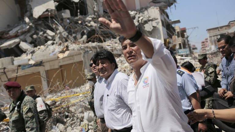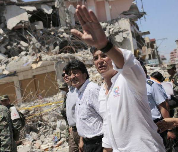 Morales, que llegó esta mañana a Manta, una de las más afectadas por el terremoto, se solidarizó con Ecuador.