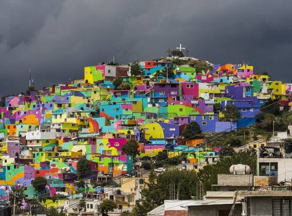 Ya casi no es peligroso caminar entre sus calles y laderas empinadas desde que Germen Crew, un grupo de artistas mexicanos, ha construido un gran mural coloreando las fachadas de todas las modestas casas con la ayuda de los lugareños.