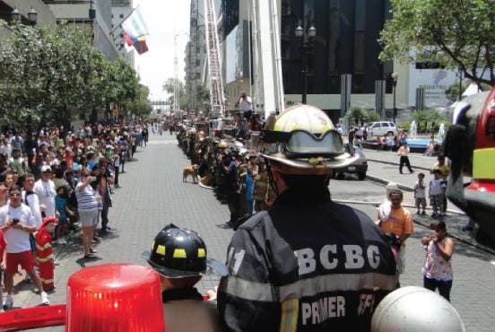 El desfile partirá desde el Parque Centenario, de la avenida 9 de Octubre, avanzará hasta el Malecón Simón Bolívar y la calle General Cornelio Escipión, donde se ubica el Museo del Bombero Ecuatoriano Jefe Félix Luque Plata.