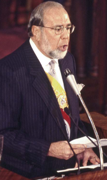 Alberto Dahik: fue acusado de peculado y enriquecimiento ilícito. Carlos Solórzano Constantine, presidente de la Corte Suprema de Justicia, ordenó la prisión preventiva. Sixto Durán-Ballén le pidió que renunciara, y Dahik, volando a Cali, se asiló en Costa Rica por 20 años.
