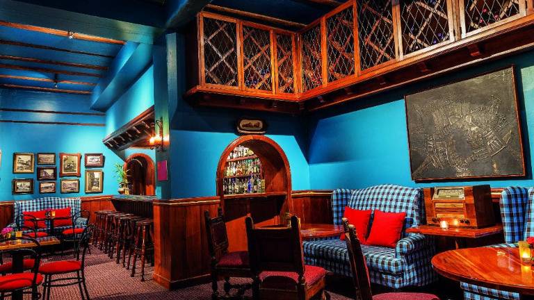 El área del restaurante El Jardín, evoca los populares bares británicos; su decoración colorida se complementa con pequeñas bancas “orejonas”.