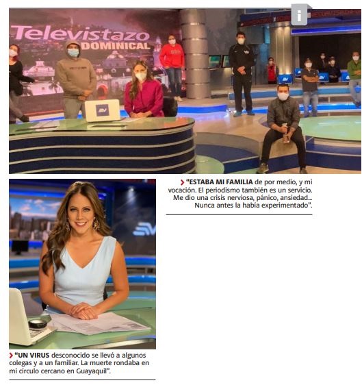 “Ha sido la primera vez que el miedo y dolor se apoderaron de mí”, recuerda la anchor de la mañana. “Un virus desconocido se llevó a algunos colegas y un familiar. La muerte rondaba en mi círculo cercano en la ciudad de G uayaquil”, sentencia.