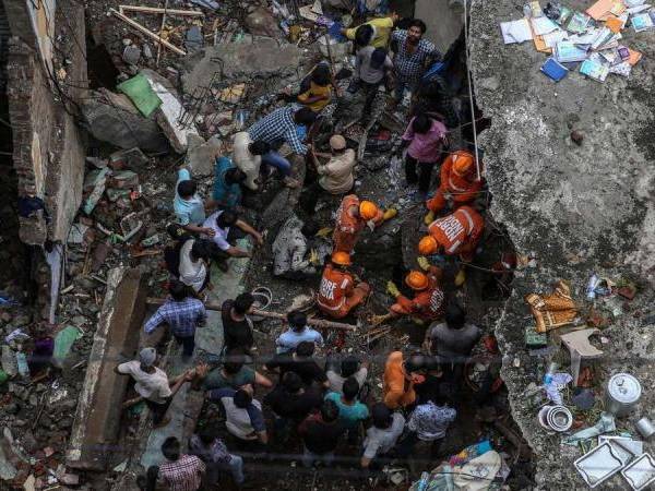 La edificación de tres pisos, de 30 años de antigüedad y ubicada en el poblado de Bhiwandi, próximo a la financiera capital de Bombay, en el estado de Maharashtra, se derrumbó el lunes mientras los residentes dormían.