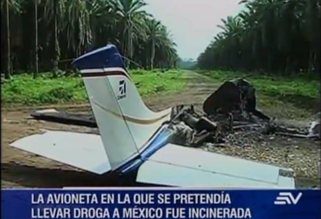 La avioneta llegó de México la tarde del jueves y fue completamente destruida por los dos pilotos mexicanos que llegaron en ella, quienes luego se fugaron en medio del sembrío de palma africana.