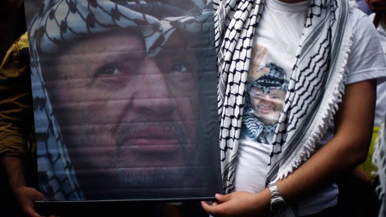 De las muchas imágenes de Arafat que este martes surcaron la Mukata -reales, como los carteles en los que se veía al líder con un kalashnikov delante de la mezquita de Al Aqsa- y mentales, destacó aquella de su primer discurso en la ONU, en el que mostró la pistola y la rama de olivo.