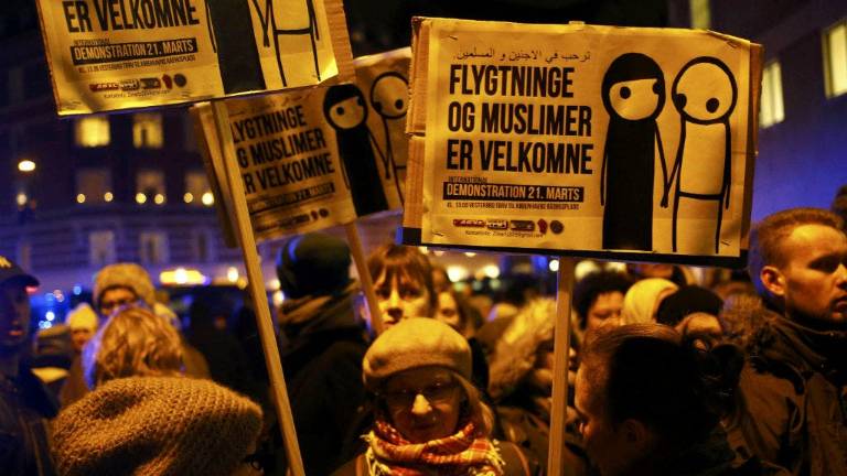 Unas 30.000 personas según estimaciones de las autoridades se congregaron en la plaza próxima al centro cultural "Krudttønden", donde el sábado un joven de 22 años mató presuntamente al cineasta danés Finn Nørregaard, presente en un debate sobre blasfemia al que asistía el artista sueco Lars Vilks, amenazado por islamistas.