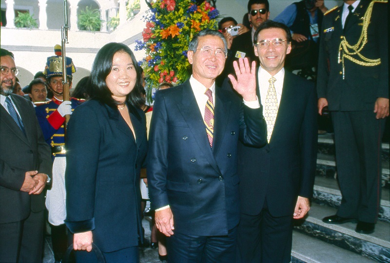 Mahuad y su hija Paola y Fujimori y su hija Keiko. Las dos hijas entablaron una buena amistad. Ambos presidentes eran divorciados y las dos actuaban como primeras damas.