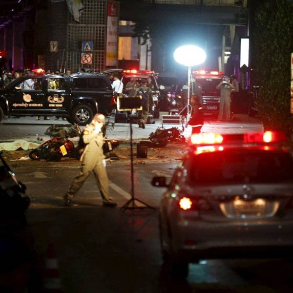 Bangkok.- La explosión de una bomba en el centro de Bangkok causó la muerte de doce personas frente a un templo budista en una de las intersecciones más populares de la ciudad, dijo un miembro del servicio de emergencias local.