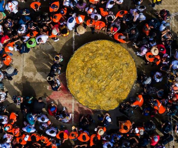 La comunidad de Ipetí, situada a unos 100 kilómetros de la capital panameña, y los visitantes que se acercaron para ver el récord, lo celebraron degustando el patacón junto con una salsa inspirada en ingredientes cultivados en el lugar y creada especialmente para este evento por chefs panameños.