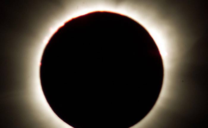 Los eclipses totales ocurren cuando la luna pasa entre la Tierra y el Sol si los tres astros están perfectamente alineados.