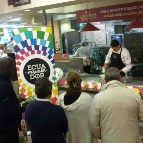 En el estand se ofrece "degustación del ceviche de langostino, el patacón de verde con ensaladilla de atún y palmito, postres a base de banano y chocolate, el canelazo, además de las infusiones de frutas deshidratadas".