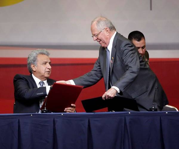 Los presidentes de Perú, Pedro Pablo Kuczynski, y de Ecuador, Lenin Moreno, encabezaron el viernes en Trujillo (500 km al norte de Lima) una reunión binacional de ministros, donde reforzaron proyectos comunes.