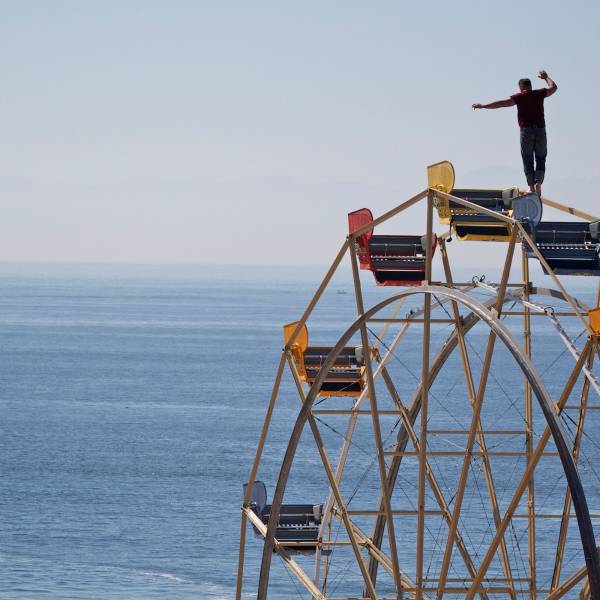 El equilibrista se subirá ahora a una de las cabinas de la noria gigante igual que un pasajero más y, una vez en la cima, saldrá de la cabina y caminará a lo largo de la noria en movimiento sin que pueda detenerse y sin la protección de un arnés o red de seguridad.
