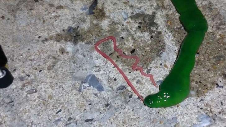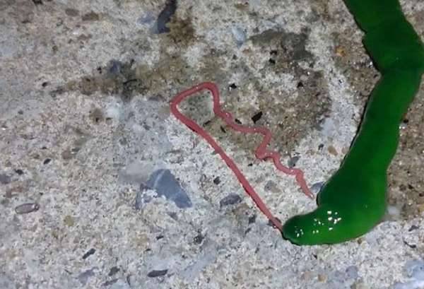 Wei Cheng, es el tubo de alimentación del gusano. Cuando estos nemertinos verdosos salen 'de caza', expulsan esta parte de su cuerpo para cubrir a su presa con un moco espeso y