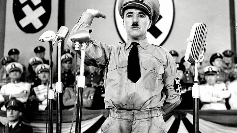El célebre cómico del cine mudo que arrancaba sonrisas con su entrañable Charlot, estrenó el 15 de octubre de 1940 en Nueva York su cinta "The Great Dictator", una obra que se mofaba de las ambiciones totalitarias de los fascismos europeos y terminaba con uno de los mejores discursos de la historia del séptimo arte.