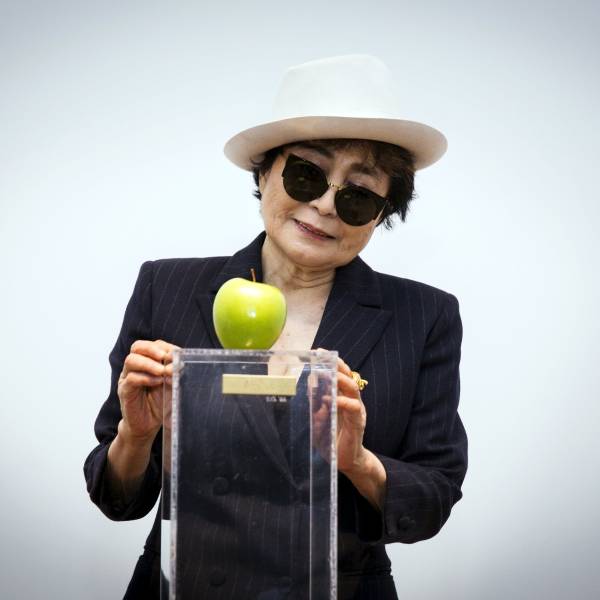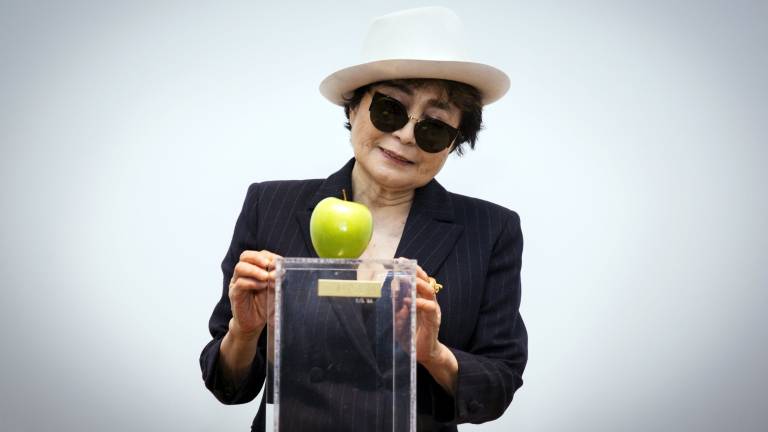 Un total de 125 obras en las que Ono no da la espalda, por supuesto, a John Lennon, con quien formó pareja en 1968 y que tiene una fuerte presencia en la muestra a través de varias piezas de vídeo, la obra conjunta "War is over! If you want it", de 1969 o, incluso, la escultura "Apple", que es inevitable que no recuerde al símbolo de los Beatles.