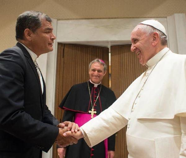 El presidente ecuatoriano participa hoy además en el Vaticano en un foro que, con el lema "Proteger la Tierra, dignificar a la humanidad", contó con la participación del secretario general de Naciones Unidas, Ban Ki-moon.