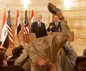 El 14 de diciembre de 2008, este hombre de 39 años en la actualidad, lanzó sus zapatos contra el entonces presidente estadounidense, George W. Bush, durante una rueda de prensa de despedida en Bagdad del instigador de la guerra en Irak. Gritó: "Perro, este es el beso de despedida del pueblo iraquí".