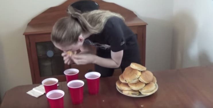 comer 20 hamburguesas de carne con queso en sólo 16 minutos.