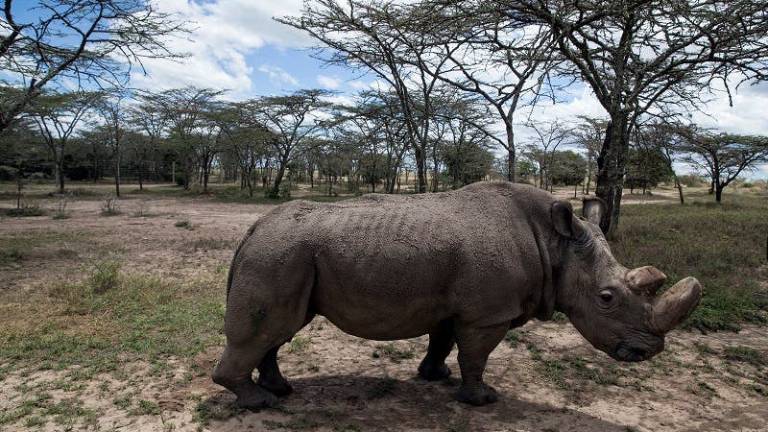 Parte de Sudán ya está en un tubo de ensayo, y la ciencia pretende que, con tiempo y dinero, el esperma del macho germine en un óvulo de una de las dos hembras para así implantar el embrión en un rinoceronte blanco del sur, una subespecie que aún cuenta con unos 4.500 ejemplares, explica Richard Vigne, director de Ol Pejeta.